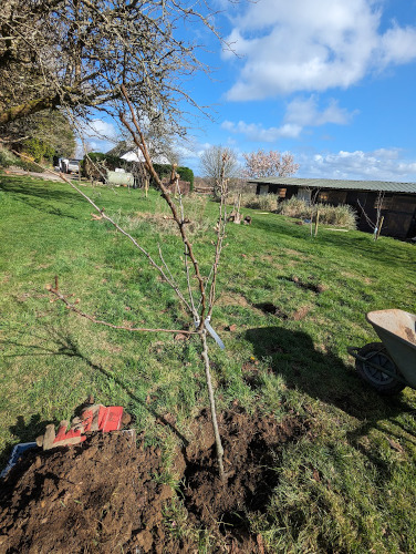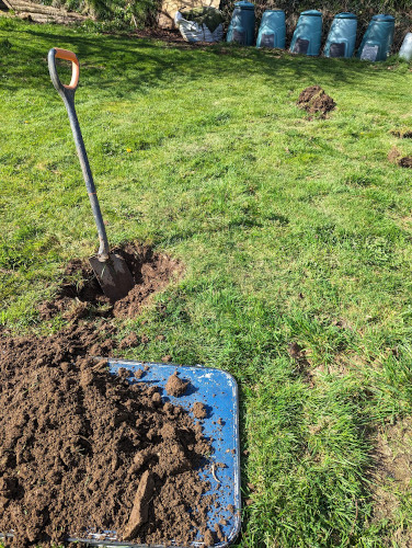 Once the trees were successfully uprooted, I transported them to a new area of the orchard that had previously housed a polytunnel, which had unfortunately succumbed to a fierce storm a couple of years ago.. It seemed like the perfect spot to accommodate the transplanted trees, offering ample sunlight and room to thrive.